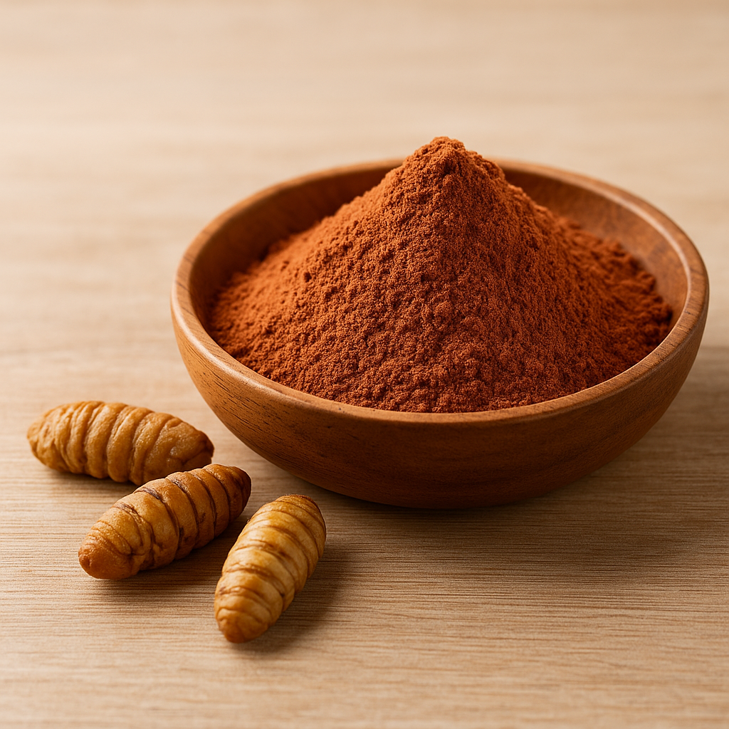 홍잠은 익은 누에(숙잠)를 찌고 동결 건조해 만든 성분 고농축 식품입니다.