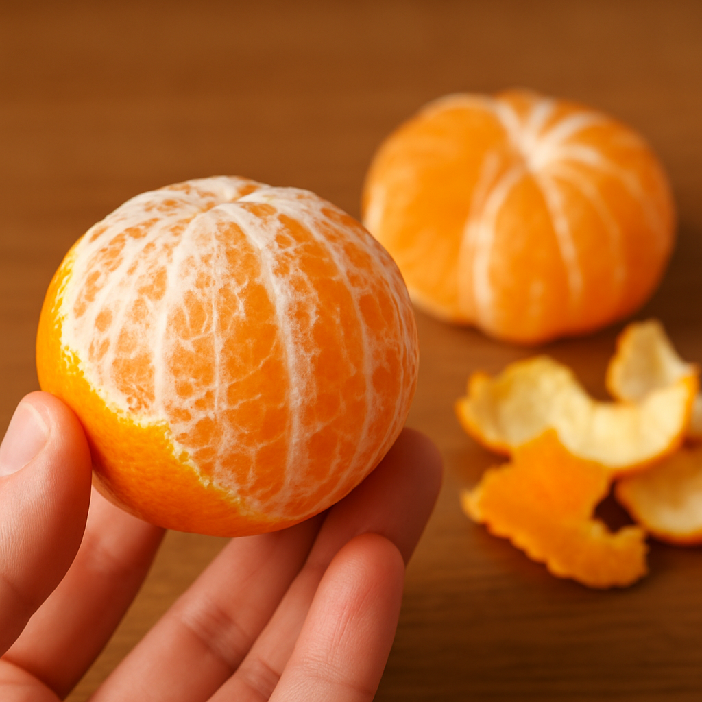 귤 껍질 안쪽의 흰 부분과 알맹이를 감싸는 속껍질에는 **식이섬유 ‘펙틴’**이 매우 풍부하다.